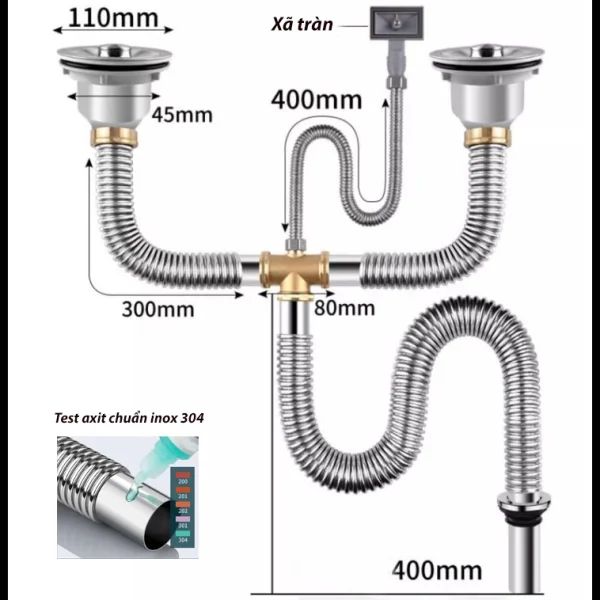 Giá treo khăn, kệ để đồ, gương soi, vòi sen, móc treo… đều được làm từ inox 304 chống gỉ, thiết kế tinh tế, phù hợp nhiều phong cách nội thất.